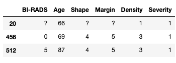print('{0} missing: {1}'.format(name, missing))BI-RADS missing: 2