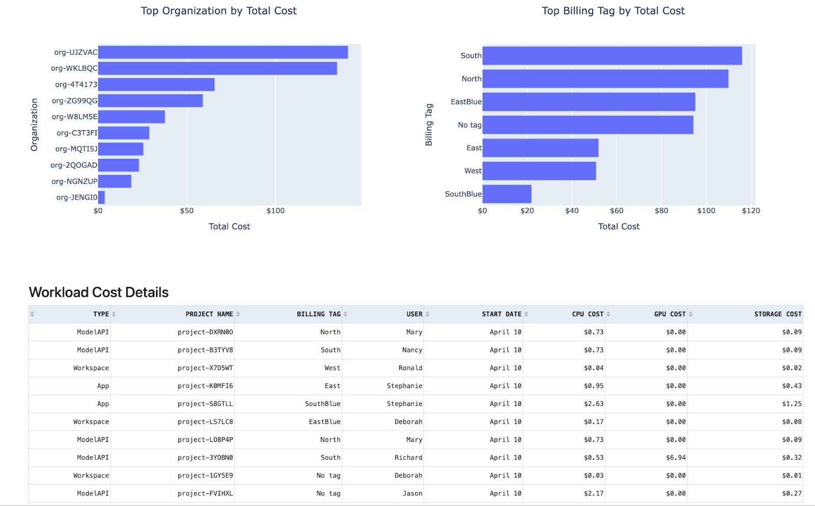 With Domino FinOps, organizations can view reports with granular attribution of compute and storage spending across various dimensions such as users, projects, organizational units, compute clusters, and hardware tiers — across all infrastructures, such as on-premises, hybrid cloud, and multicloud — all in a single pane of glass. Granular cost attribution provides accurate information without any manual tagging of infrastructure assets, and it is a source of invaluable insights into top cost drivers, enabling data-driven decisions in the long term.