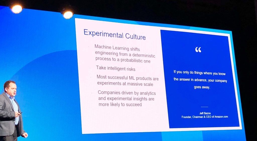 Pete indicates, in both his November 2018 and Strata London talks, that ML requires a more experimental approach than traditional software engineering. It is more experimental because it is “an approach that involves learning from data instead of programmatically following a set of human rules.” Because the nature and approach of ML projects is more experimental, industry people and their companies won’t know what will happen until they try it (i.e., more probabilistic rather than deterministic). This may present challenges for product management as many product managers (PM) have been trained on shipping projects with a deterministic approach.