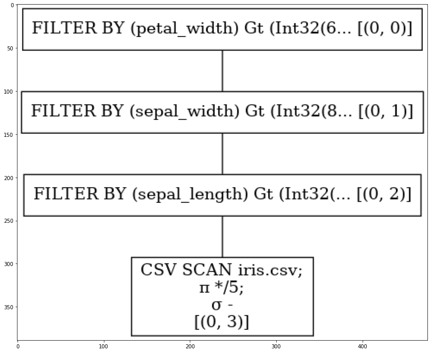 We see that in this case the FILTER BY statements are sequentially applied, resulting in the construction of multiple dataframes. On the other hand, using optimisation changes the plan dramatically: