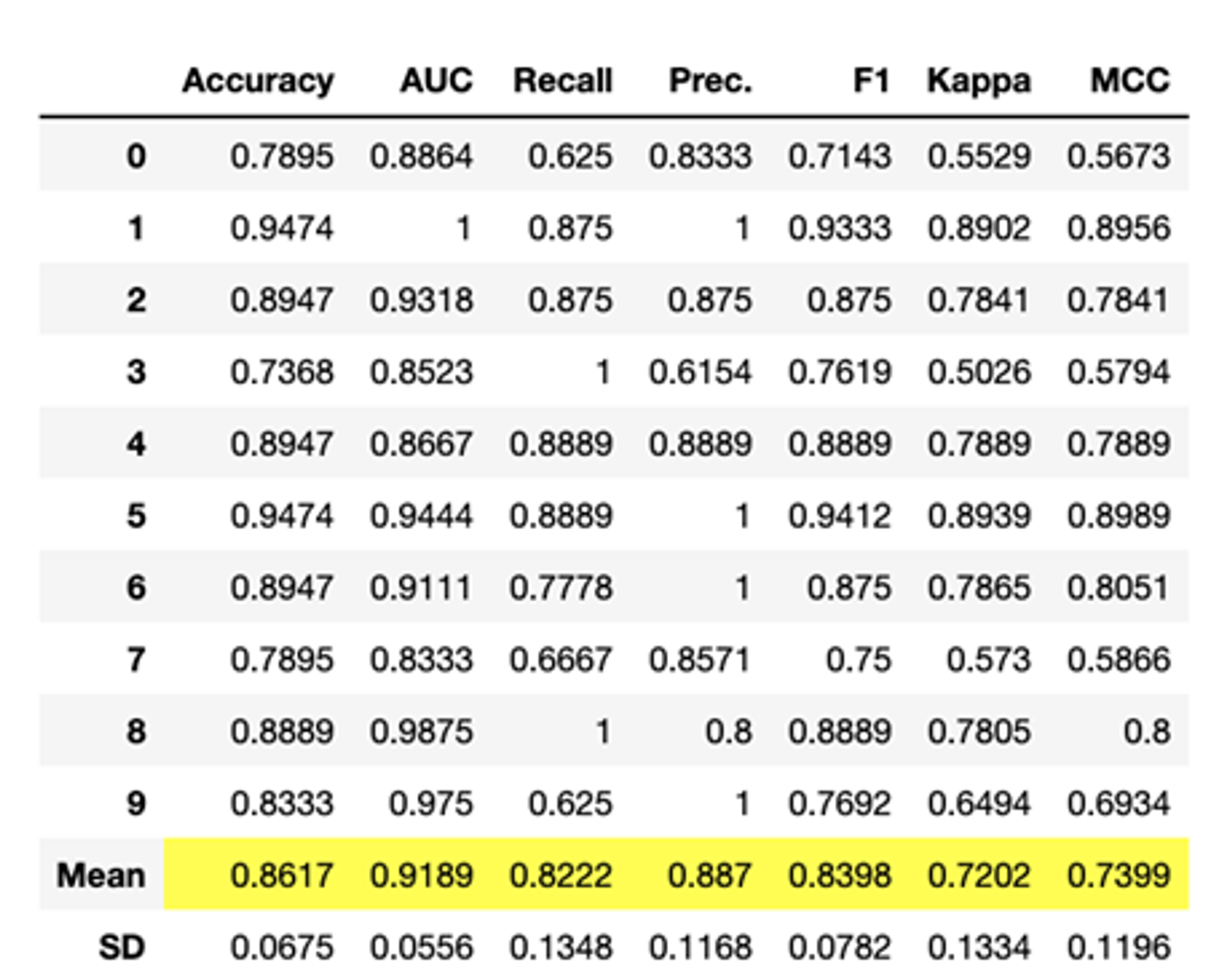 Here is where we begin to see the full power of PyCaret. In a single line of code, we can train and compare baseline versions of all available models on our dataset: