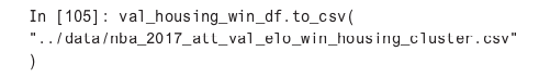 A next step in learning more about NBA teams is to use unsupervised ML to cluster the data to find more insights. I was able to manually find median home price data for a county and the population for each county from the census.