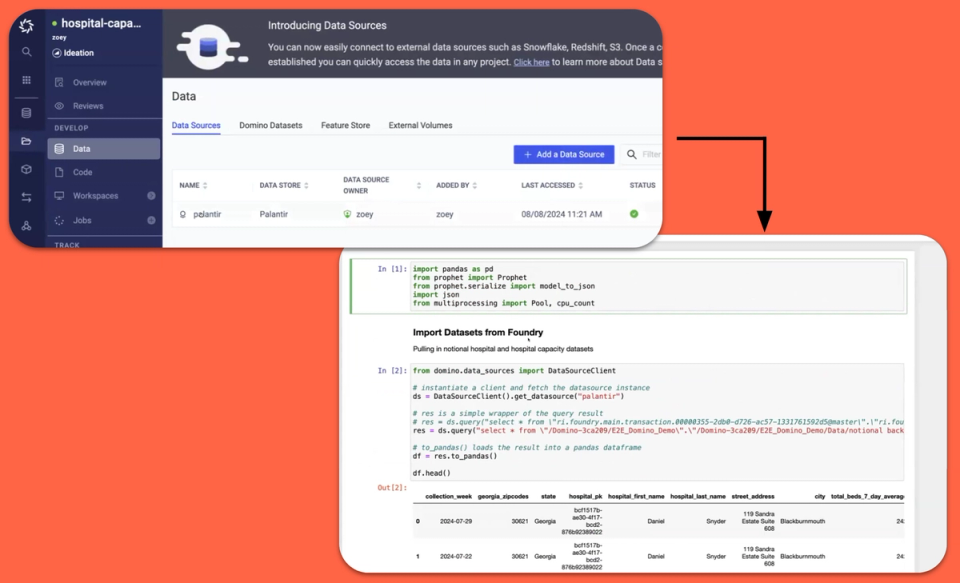 Connect to Palantir Foundry from Domino, providing AI teams with seamless data discovery and exploration across rich Ontology object metadata, schema, and data lineage.