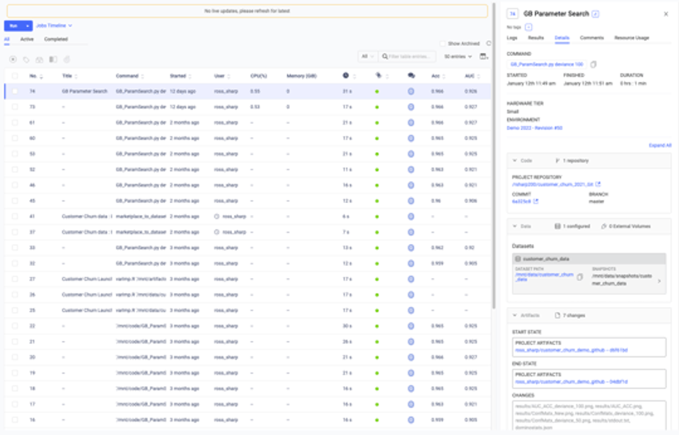 Domino provides one-click access to a wide variety of open-source and commercial tools and languages including Python, R, SAS, and MATLAB. Versions are tracked to avoid conflicts when team members try to reuse work. As technology changes, it's easy to add new emerging tools when needed, future-proofing your data science platform.